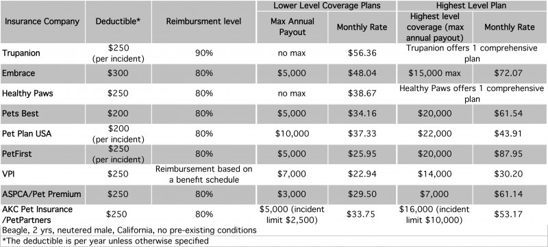 With their strong desire to follow their nose without regard for their own safety and their genetic predisposition to a number of medical conditions, insuring your Beagle can provide the peace of mind in knowing that you could pay a veterinary bill that could reach into the thousands of dollars. It’s the umbrella needed to help you provide the best possible treatment for your pet should they get sick, letting you enjoy a lifetime of precious moments with your dog. The great news is that Pet Insurance has evolved and now allows pet owners to customize coverage and create a plan that meets their monthly budget. We’ve gathered a selection of quotes to give you an idea of how much health insurance for Beagles can cost. We recommend that you pay attention to the deductibles and reimbursement levels. Some plans pay out a yearly maximum, and some pay out a maximum per incident.